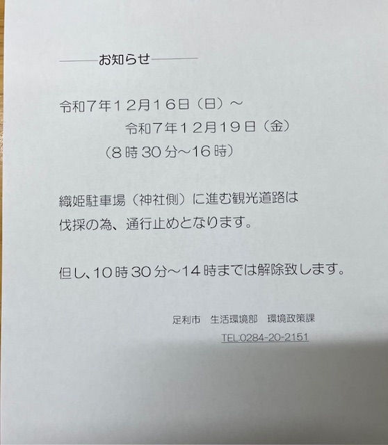 足利織姫神社よりお知らせ